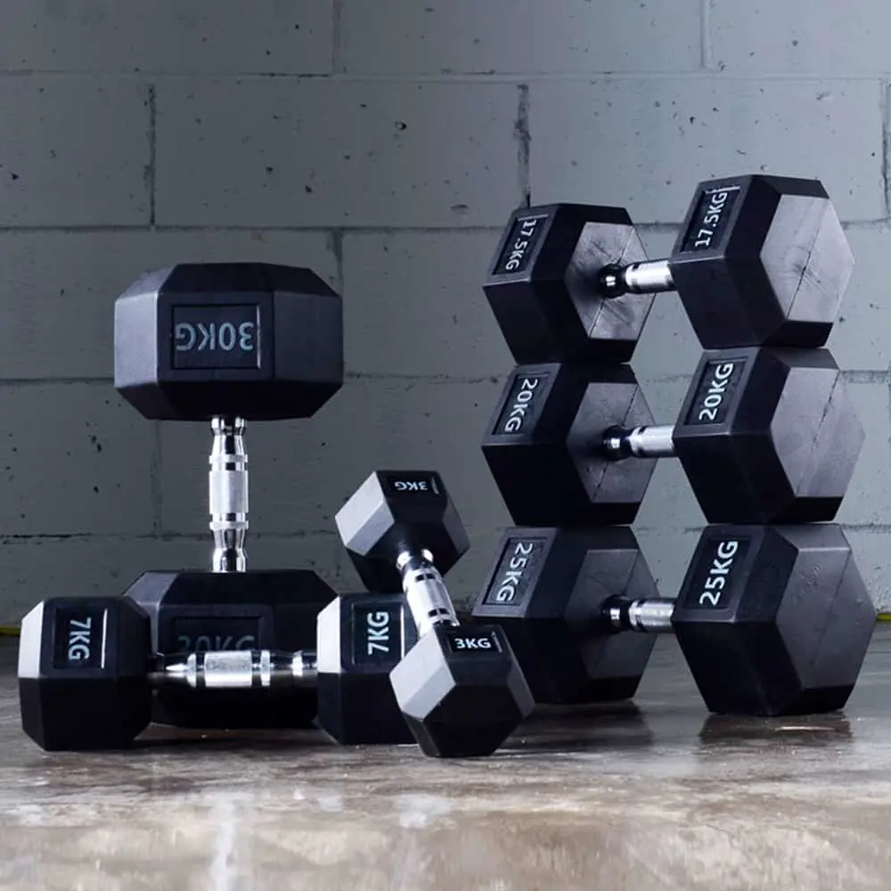 Резиновые гантели с шестигранной головкой оснащены прочными резиновыми головками, которые. минимизируют шум, уменьшают повреждение пола и уменьшают износ гантелей.