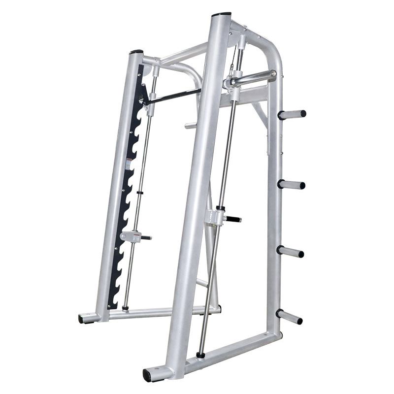 G-631 — это коммерческий тренажер Смита. Вы можете тренировать четырехглавые мышцы, икроножные, двуглавые мышцы бедра, большие грудные и другие мышцы. Это незаменимое профессиональное многофункциональное фитнес-оборудование для спортзала. Многофункциональный тренажер может выполнять многочисленные упражнения для верхней и нижней части тела под руководством инструктора. Штанга скользит по двум направляющим, которые перпендикулярны земле. На штангу помещается пластина штанги, которая обеспечивает сопротивление упражнению.