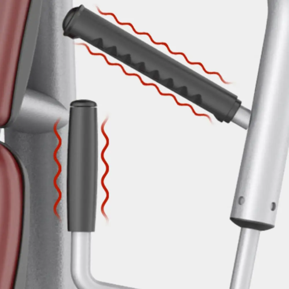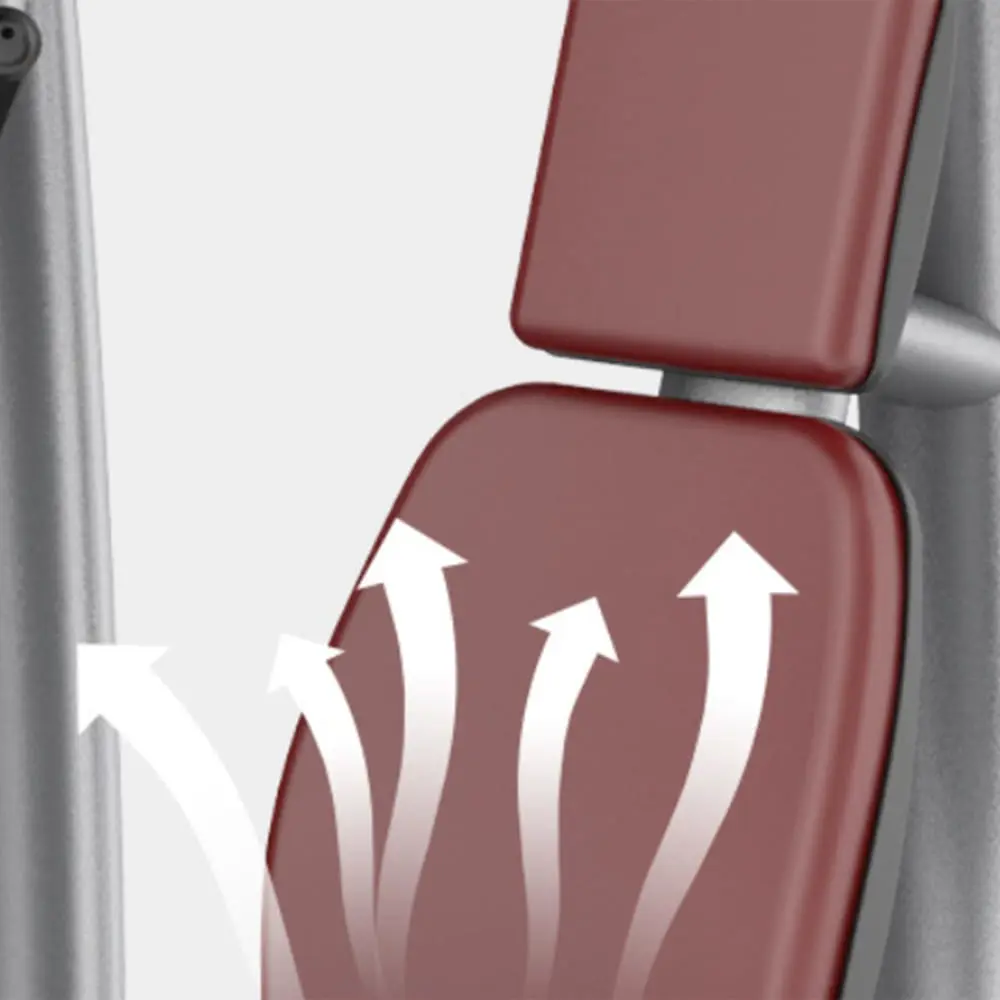 Пять стартовых положений грудной машины Pectoral Machine позволяют пользователям выбирать желаемый диапазон движений, а шарнирный рычаг подходит для пользователей с разной длиной рук.