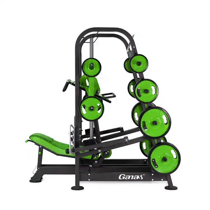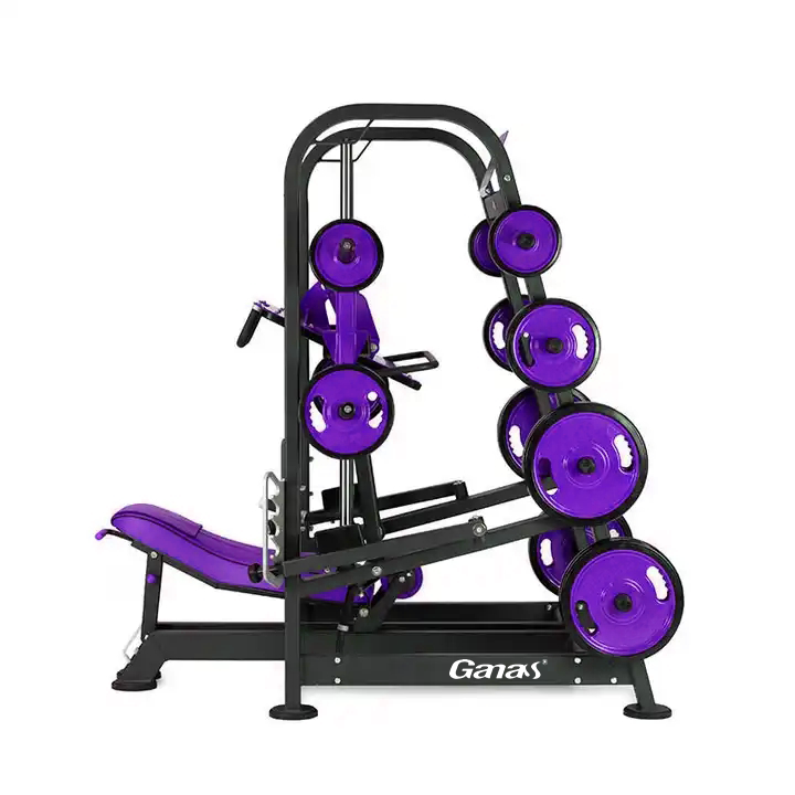Вертикальный жим ногами GANAS имеет регулируемый наклон спинки, регулируемую широкую платформу тяги, простую систему запуска с предохранительным рычагом и 5 регулируемых углов тренировки, подходит для людей любого размера.
