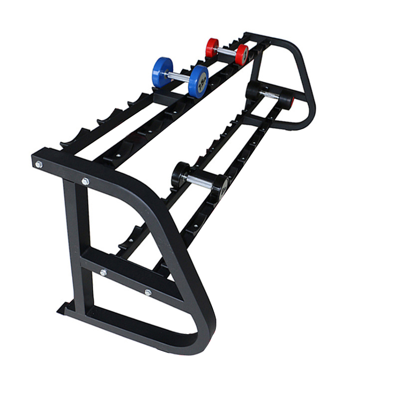 Стойка для гантелей Ganas Gym Equipment Selectorized Equipment Series MT-7050 2-Tier Dumbbell Rack отличается простой и удобной конструкцией, которая вмещает в общей сложности 10 пар по 20 гантелей. Наклонный угол плоскости и подходящая высота удобны для всех пользователей.