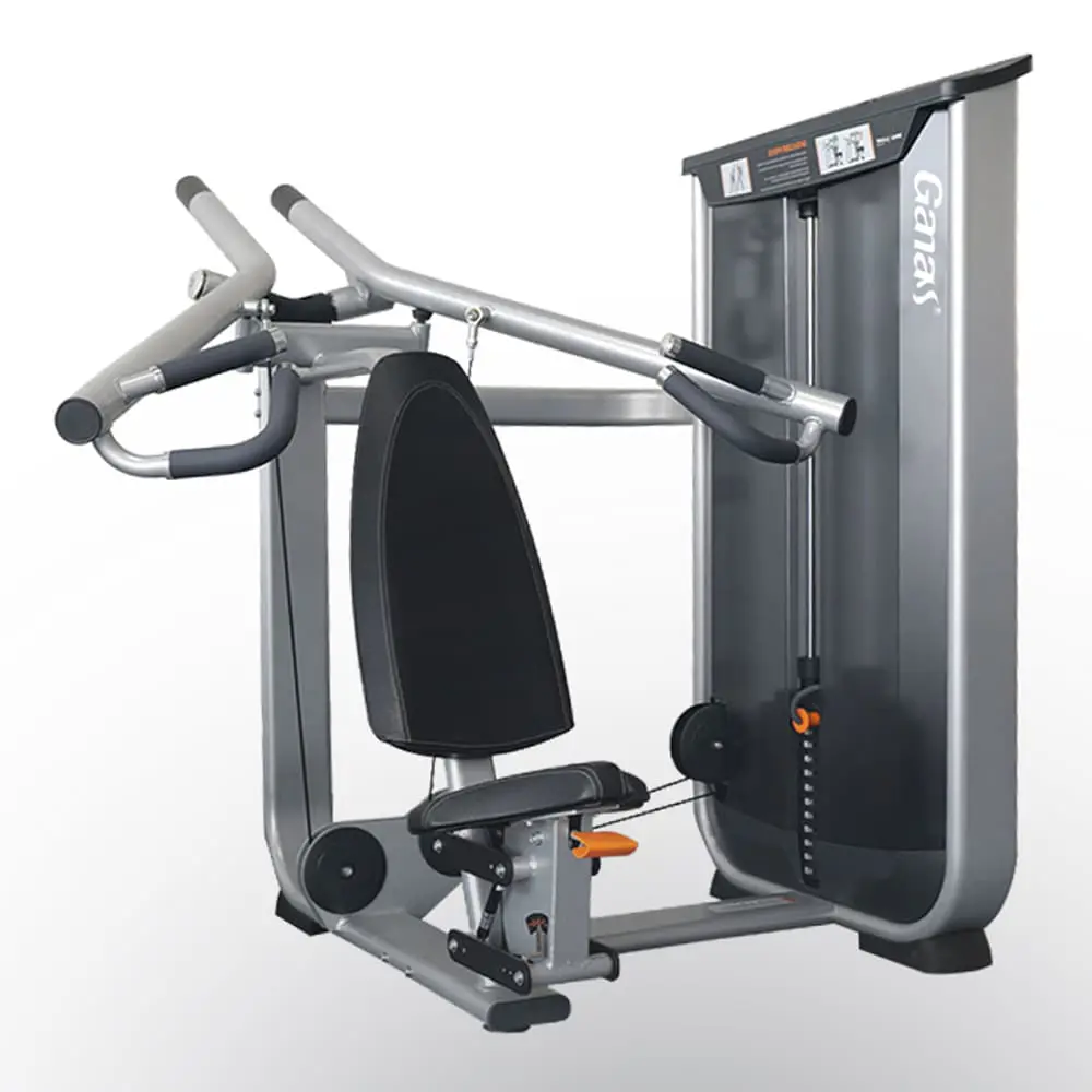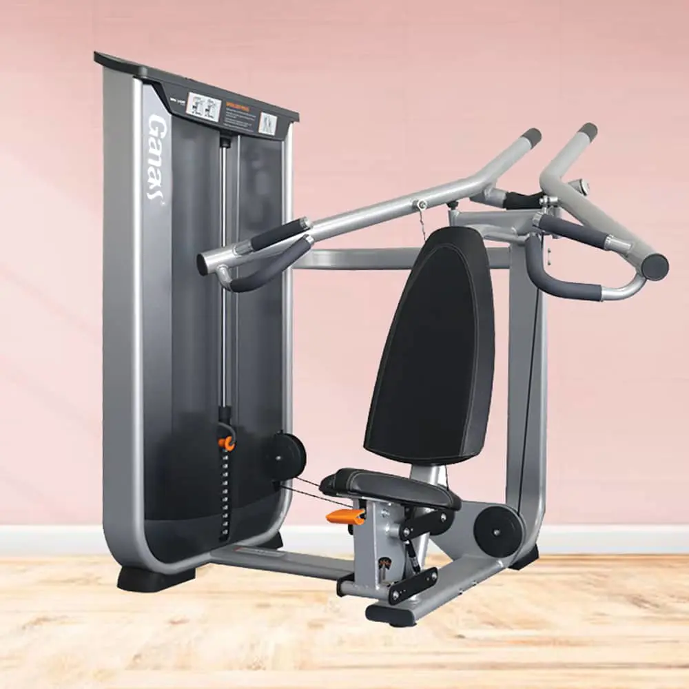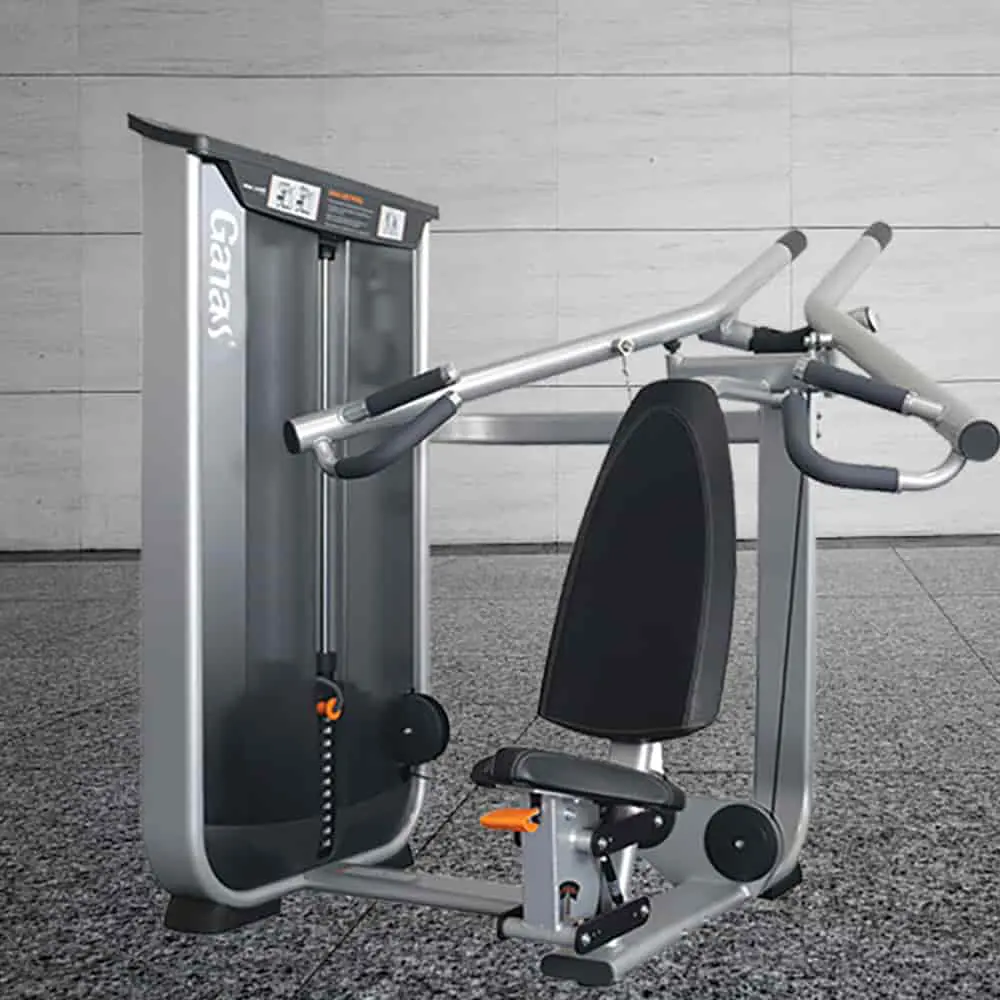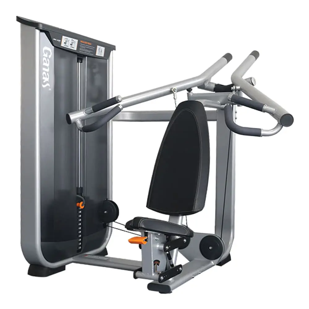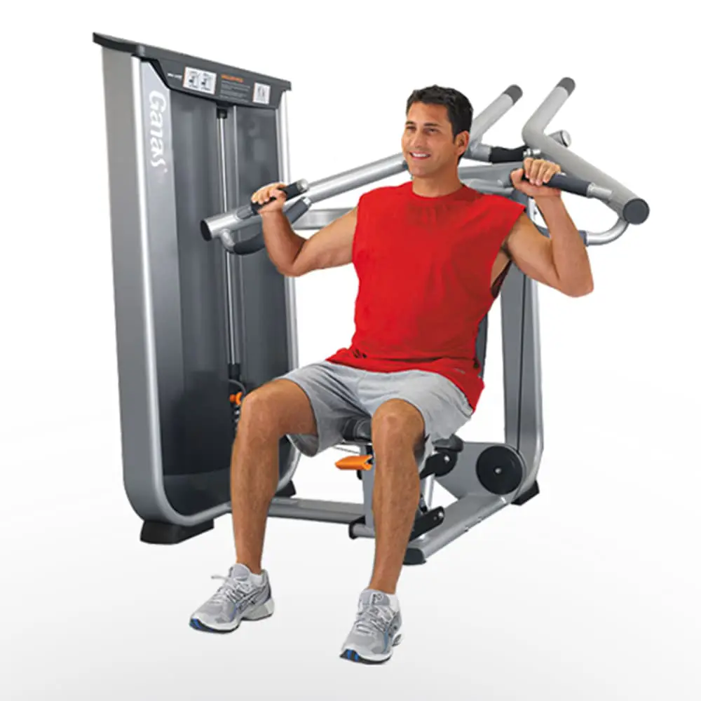 В жиме от плеч серии Ganas VS-S используется наклонная спинка с регулируемым сиденьем для лучшей стабилизации туловища и адаптации к пользователям разного роста. Имитируйте жим плечами, чтобы лучше реализовать биомеханику плеч. Устройство также оснащено удобными ручками с разным положением, что повышает комфорт занимающихся и разнообразие упражнений.